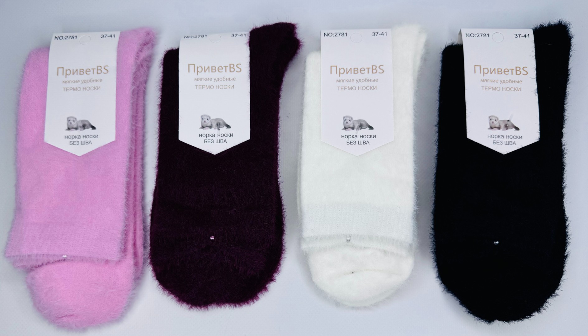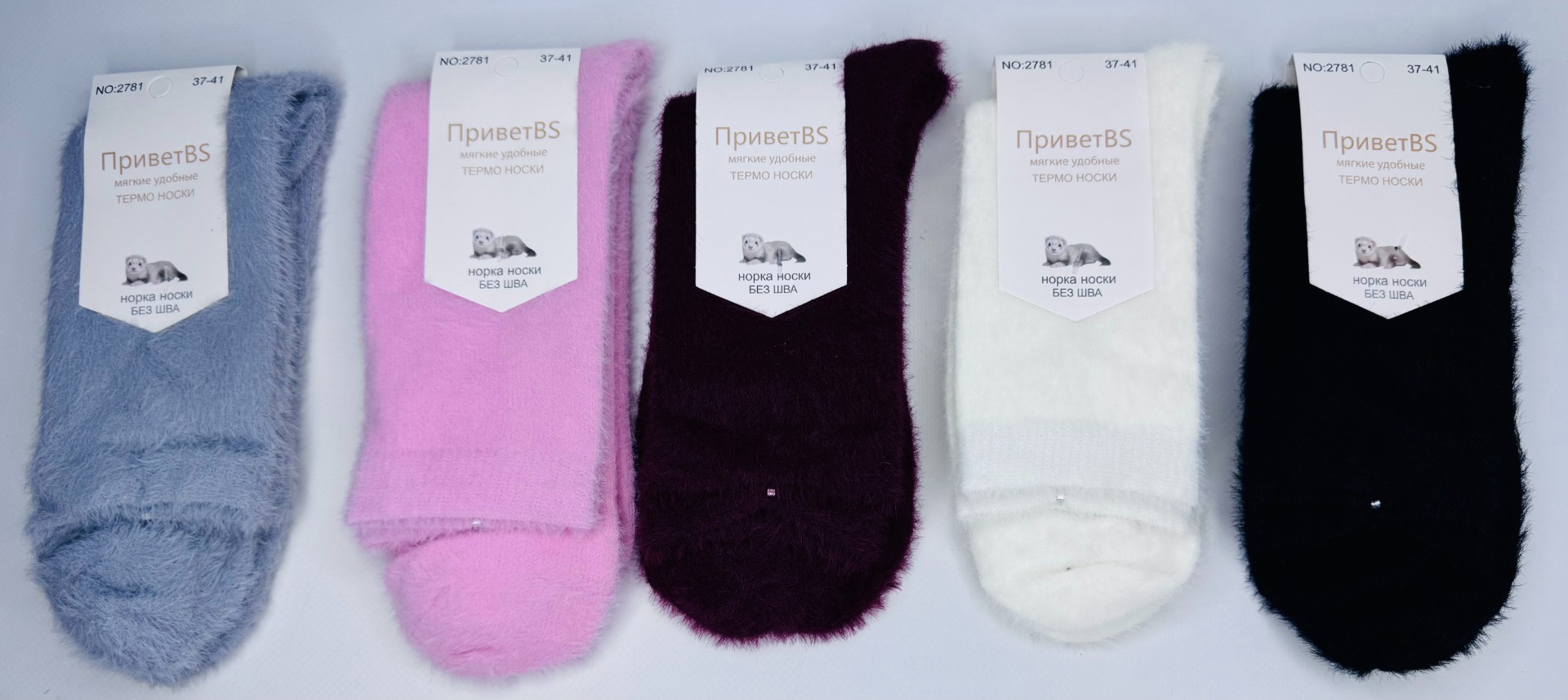 НОСКИ ЖЕНСКИЕ ИЗ ШЕРСТИ НОРКИ, НЕ МАХРОВЫЕ АССОРТИ БЕЗ ПРИНТА ФИРМЫ ПРИВЕТ 2781 в Буденновске